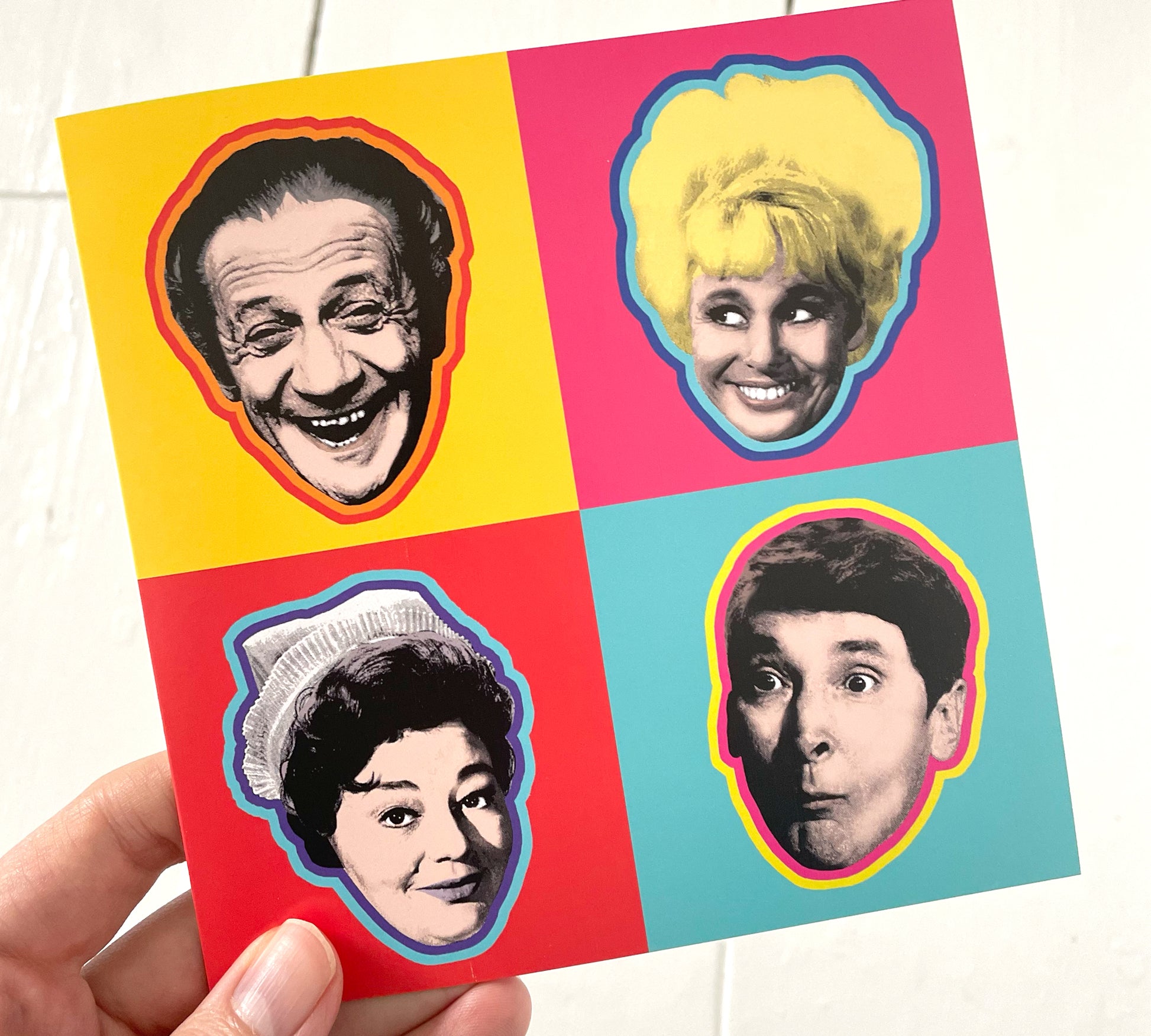 Carry on Film Greetings Card | Sid, Barbara, Hatty, Kenneth | Carry on Movie Pop Art Style Card | Fun Square Birthday Card