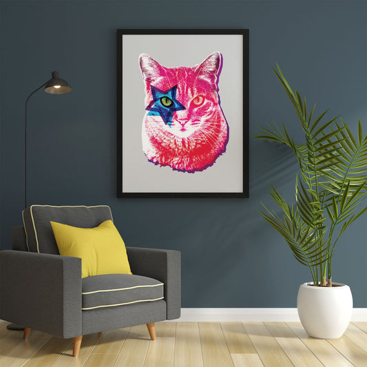 Warhol Cat Pop Art Print | Funky Star Cat Poster for Animal Lovers