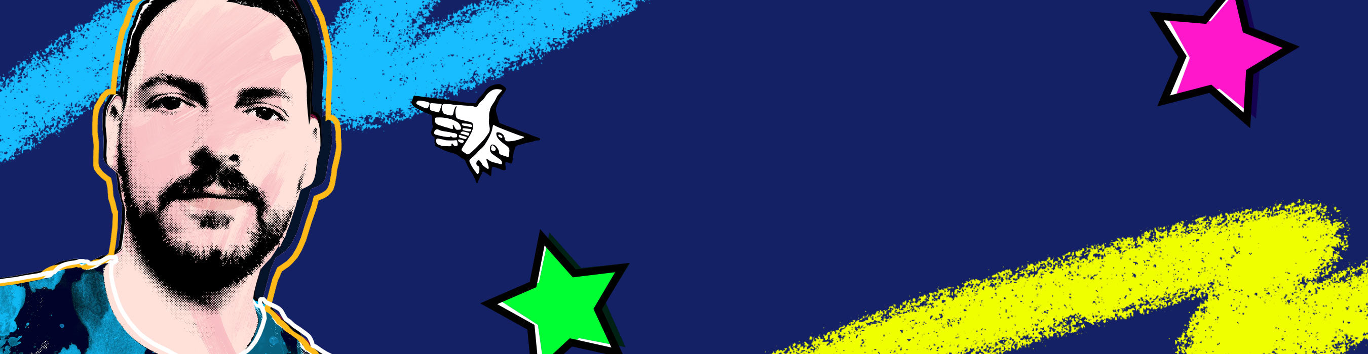 My inspiration is from advertising campaigns, comic books, retro advertising styles, music artwork, rave flyers and anything which has a huge visual impact. Some of it brash, some of it tongue-in-cheek, most of it full of energy and colour.